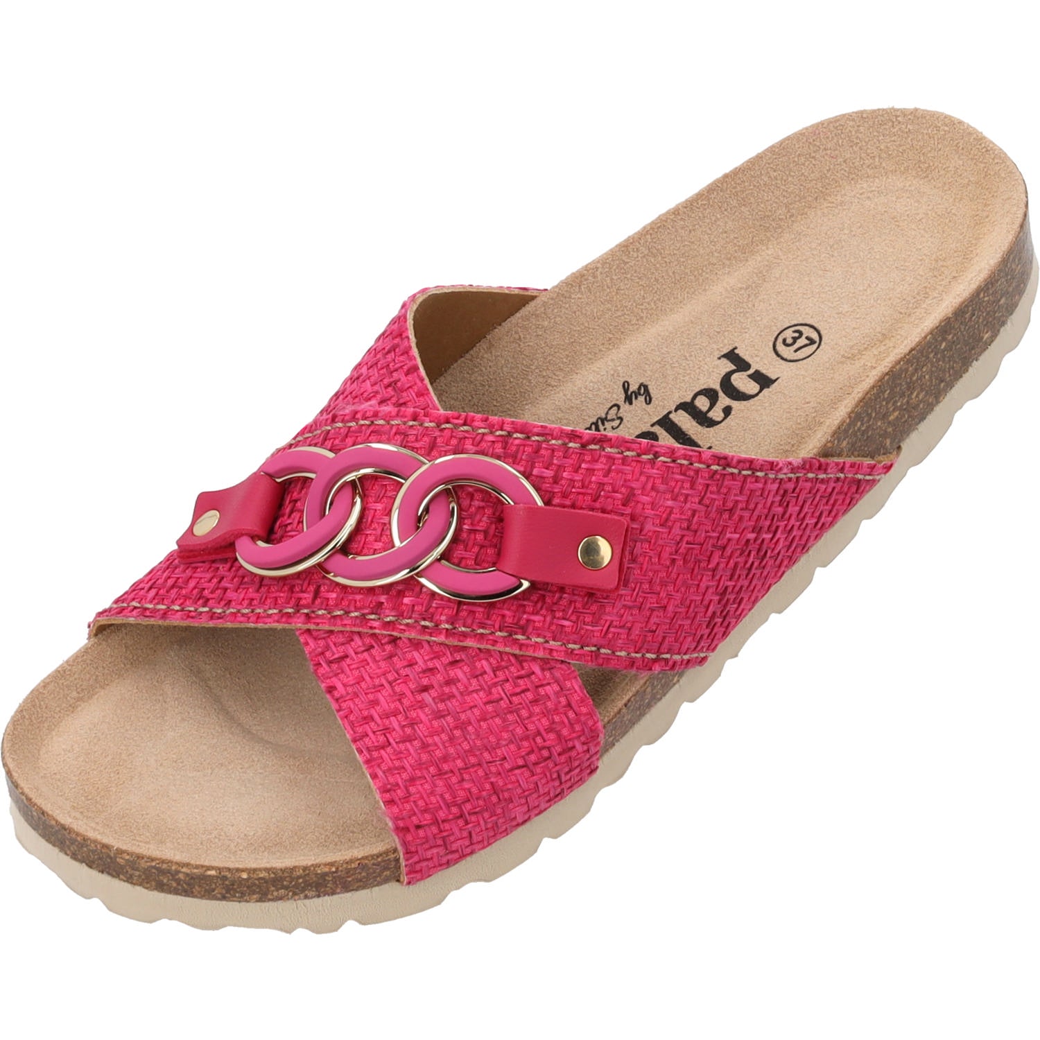 Mit den 'Palado Denalia' bist du bestens gerüstet für sonnige Tage, egal ob in der City, im Café oder am Strand. Die eleganten Kreuzriemer aus der exklusiven Palado by Sila Sahin Kollektion kombinieren ein einzigartiges Design mit sommerlichem Flair. Das raffiniert gewebte Obermaterial wird durch eine stilvolles Kettenelement veredelt – ein absoluter Hingucker für jeden Look. Die weiche Veloursleder-Decksohle und das komfortable Weichfußbett bieten ein Tragegefühl wie auf Wolken, während die leichte Laufsohle für eine angenehme Flexibilität sorgt. Ein absolutes Must-Have für deinen Schuhschrank.