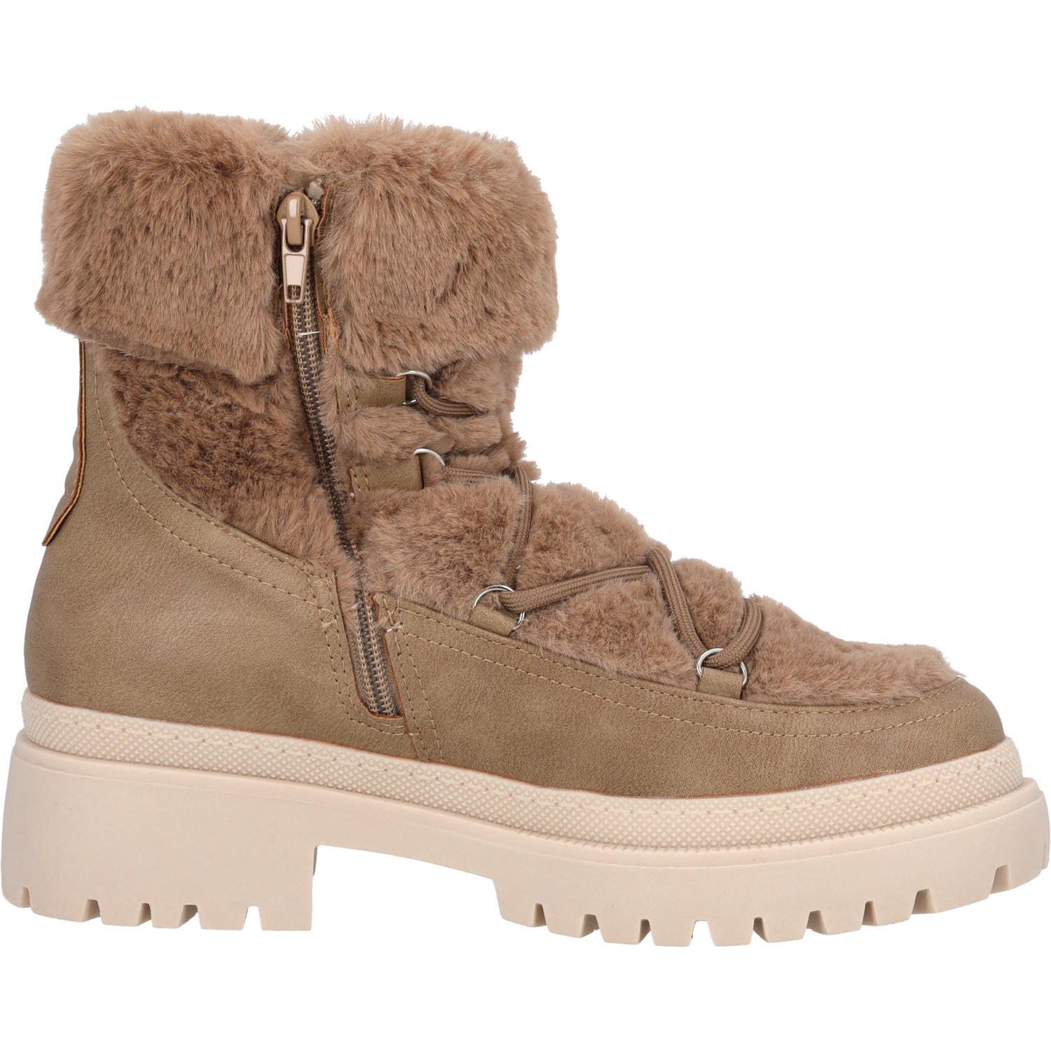 Das Palado Modell „Ithaka“ ist ein Winterstiefel, der Wärme und Stil geschickt vereint. Mit einer Schafthöhe von 15cm bei Größe 37 bietet dieser Stiefel aus Synthetikmaterial idealen Schutz und Wärme für kalte Tage. Die Innenseite ist mit einem kuscheligen Warmfutter ausgestattet, das für behaglichen Tragekomfort sorgt. Der praktische Reißverschluss auf der Innenseite ermöglicht einfaches An- und Ausziehen, während die profilierte Laufsohle aus Gummi-/Synthetikgemisch Rutschfestigkeit und Stabilität bietet. Die kreuzweise laufenden Schnürsenkel sowie das pelzähnliche Synthetikobermaterial geben dem Snow Boot das gewisse Extra und machen ihn zum Mode-Statement. Erhältlich in den Farben Beige und Schwarz fügt sich der „Ithaka“ harmonisch in jede Wintergarderobe ein und verleiht jedem Outfit eine extra Portion Stil.