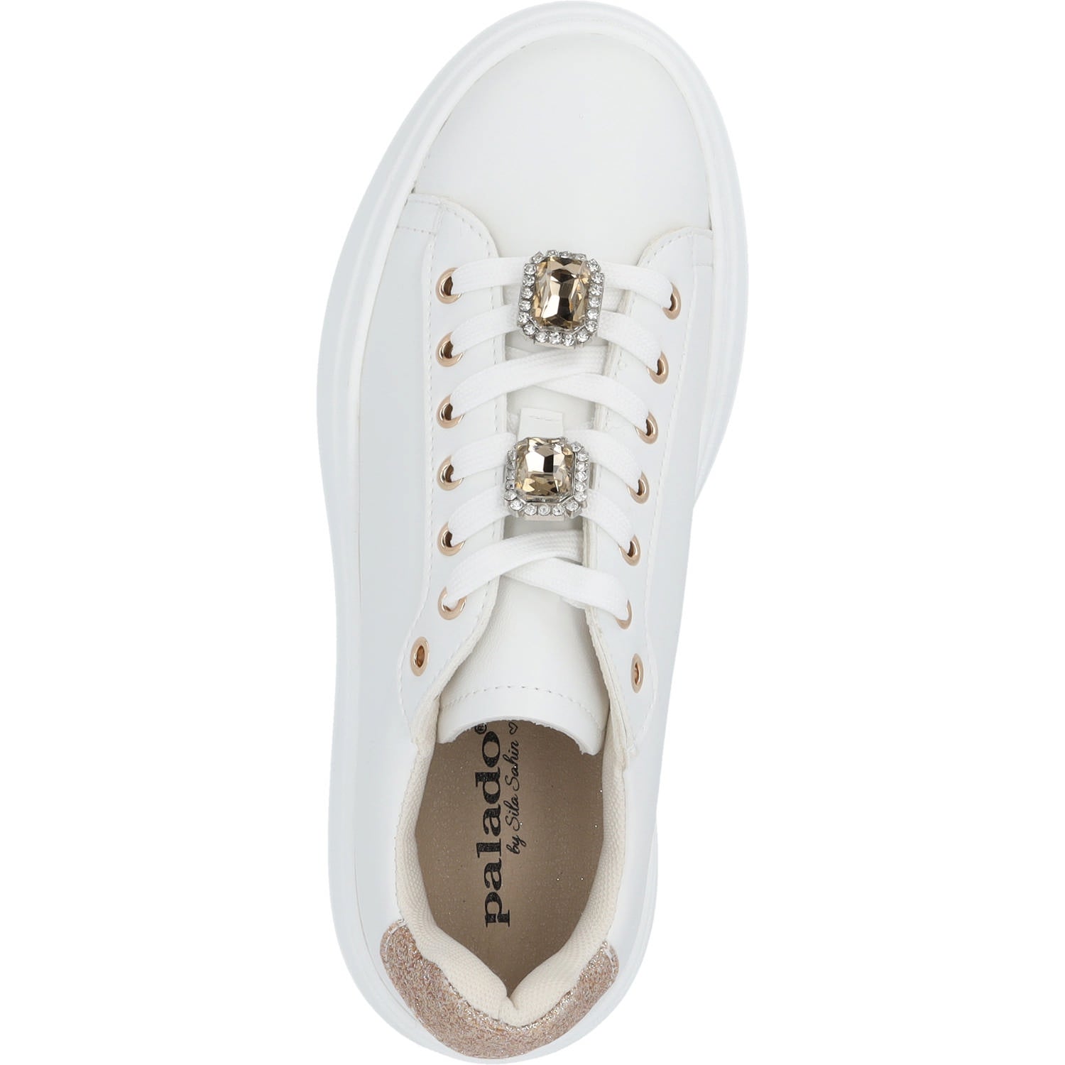 Der Sneaker 'Palado Yellar' aus der exklusiven Palado by Sila Sahin Kollektion setzt ein modisches Statement. Zwei auffällige Schmucksteine auf der Schnürung ziehen alle Blicke auf sich – ganz im Stil von Sila Sahins Liebe zu glitzernden Details. Die cleane Silhouette wird durch die moderne Plateausohle abgerundet und sorgt für einen femininen, urbanen Look mit Wow-Faktor.