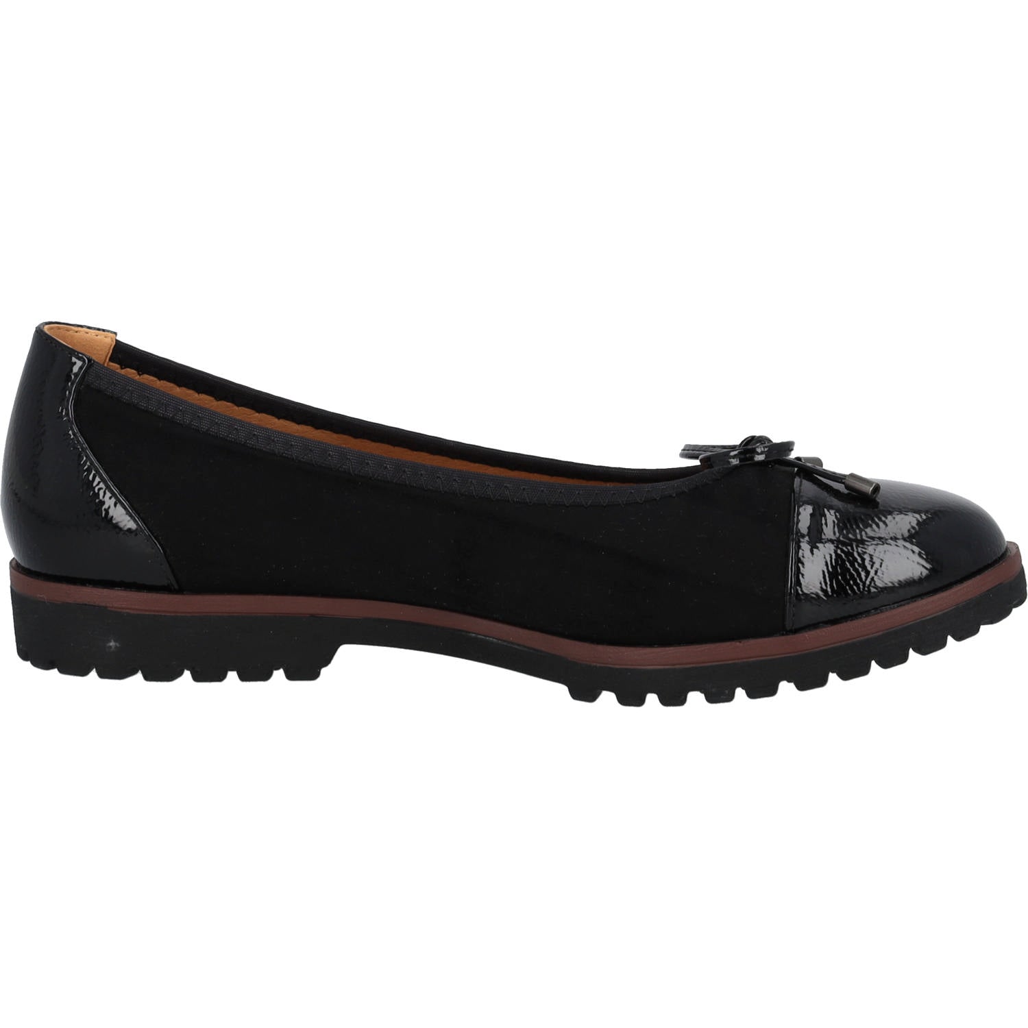 Zeitlos schön und dennoch modern – die Ballerinas 'Palado Eralos' aus der exklusiven Palado by Sila Sahin Kollektion vereinen feminine Eleganz mit alltagstauglichem Komfort. Die glänzende Lackkappe sorgt für einen edlen Akzent, während die feine Zierschleife das Design charmant abrundet. Dank der profilierten Sohle bieten die Ballerinas zuverlässigen Halt und angenehmen Tragekomfort.