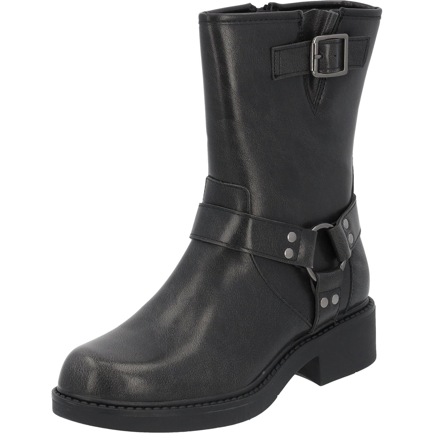 Das Modell "Hanav" ist ein klassischer Bikerstiefel aus Kunstleder, mit einer Absatzhöhe von 4cm und Schafthöhe von 20cm bei Größe 37. Optisch zeichnet sich der Stiefel durch seine markanten Riemen und Schnallen aus, die ihm seinen charakteristischen Look verleihen. Der seitliche Reißverschluss erleichtert das An- und Ausziehen und die robuste Gummi-/Synthetiksohle rundet das Design ab. Egal ob auf dem Motorrad oder beim Stadtrundgang, dieser Stiefel ist ein treuer Begleiter für alle, die Wert auf Qualität und Charakter legen.
