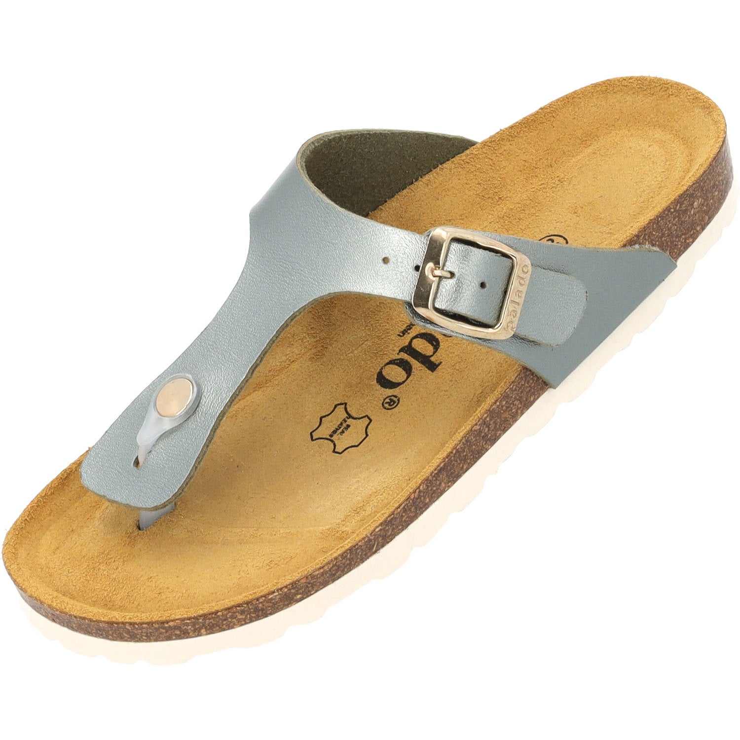 Erlebe den schimmernden Glanz unserer Palado Sandale „Kos Metallic“. Die Kombination aus weicher Veloursleder-Decksohle und dem metallisch schimmernden Synthetik-Obermaterial verleiht diesen in Spanien gefertigten Zehentrennern sowohl Komfort als auch einen modernen, stilvollen Look. Die Dornschließe sorgt für eine individuelle Passform, während die Laufsohle aus EVA Stabilität und Langlebigkeit garantiert. Ein Must-Have für jede Garderobe, das Dein Outfit mit einem Hauch von Luxus abrundet.