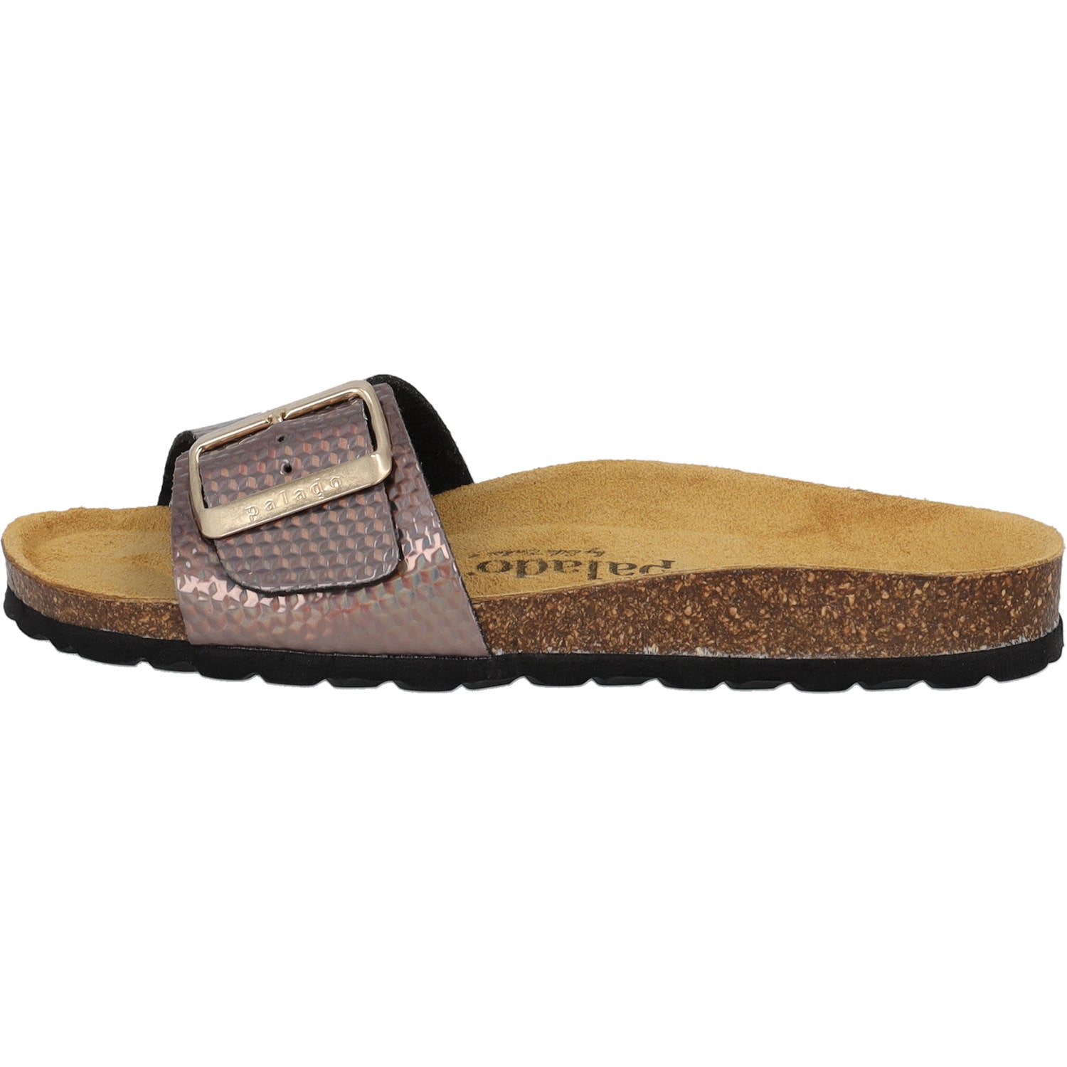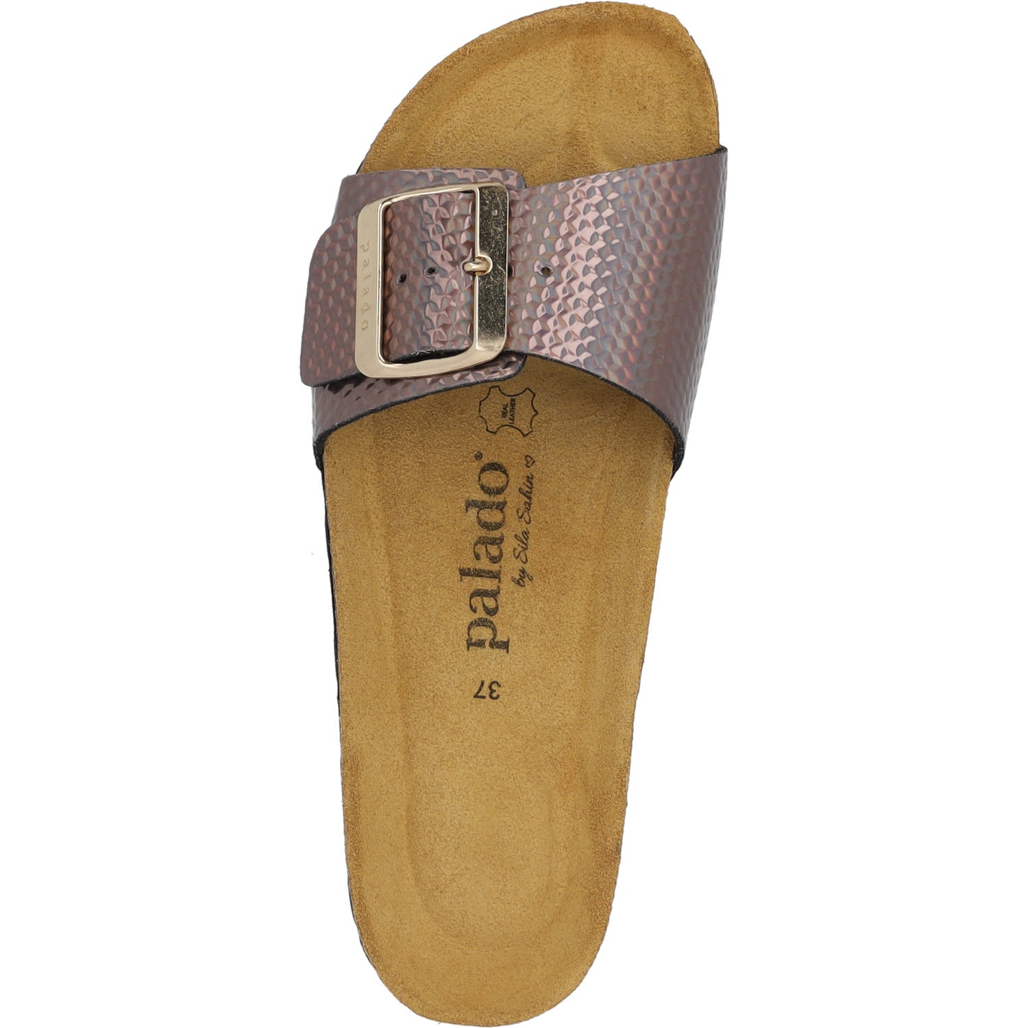 Sonnige Tage, funkelnde Akzente und unvergleichlicher Komfort! Der 'Palado Malta EGS Stardust' aus der exklusiven Palado by Sila Sahin Kollektion begeistert mit seinem schimmernden Riemen aus hochwertigem Synthetik-Material. Gefertigt in Spanien, überzeugt die Einriemer-Pantolette mit einer weichen Veloursleder-Decksohle, die sich sanft an den Fuß schmiegt, während die leichte EVA-Sohle für angenehme Flexibilität sorgt. Die große Dornschließe ergänzt das Design perfekt und ermöglicht eine individuelle Passform.