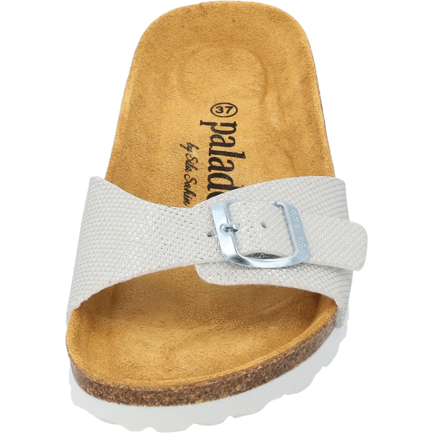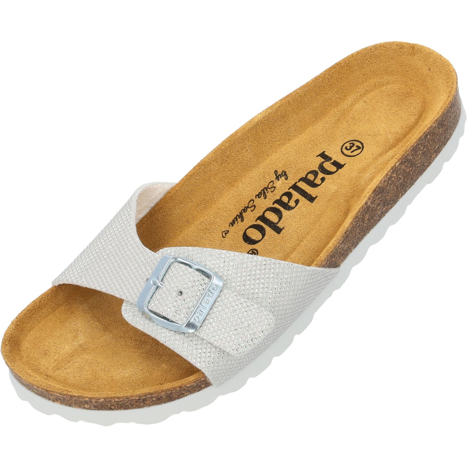 Der "Palado Malta Tiffany" strahlt einen Hauch von Luxus aus und ist ein echtes Schmuckstück in der Palado by Sila Sahin Kollektion. Dieser Einriemer in Glitzeroptik ist mehr als nur eine Sandale – es ist eine Stilbotschaft für deine Füße. Produziert in Spanien bietet der „Malta Tiffany“ mit seinem bequemen Veloursleder-Fußbett und der leichten EVA-Sohle unvergleichlichen Komfort. Ob für den entspannten Alltagslook oder als glitzerndes Highlight zu deiner Abendgarderobe – der "Malta Tiffany" verbindet Eleganz mit Komfort und bereichert jede Garderobe.
