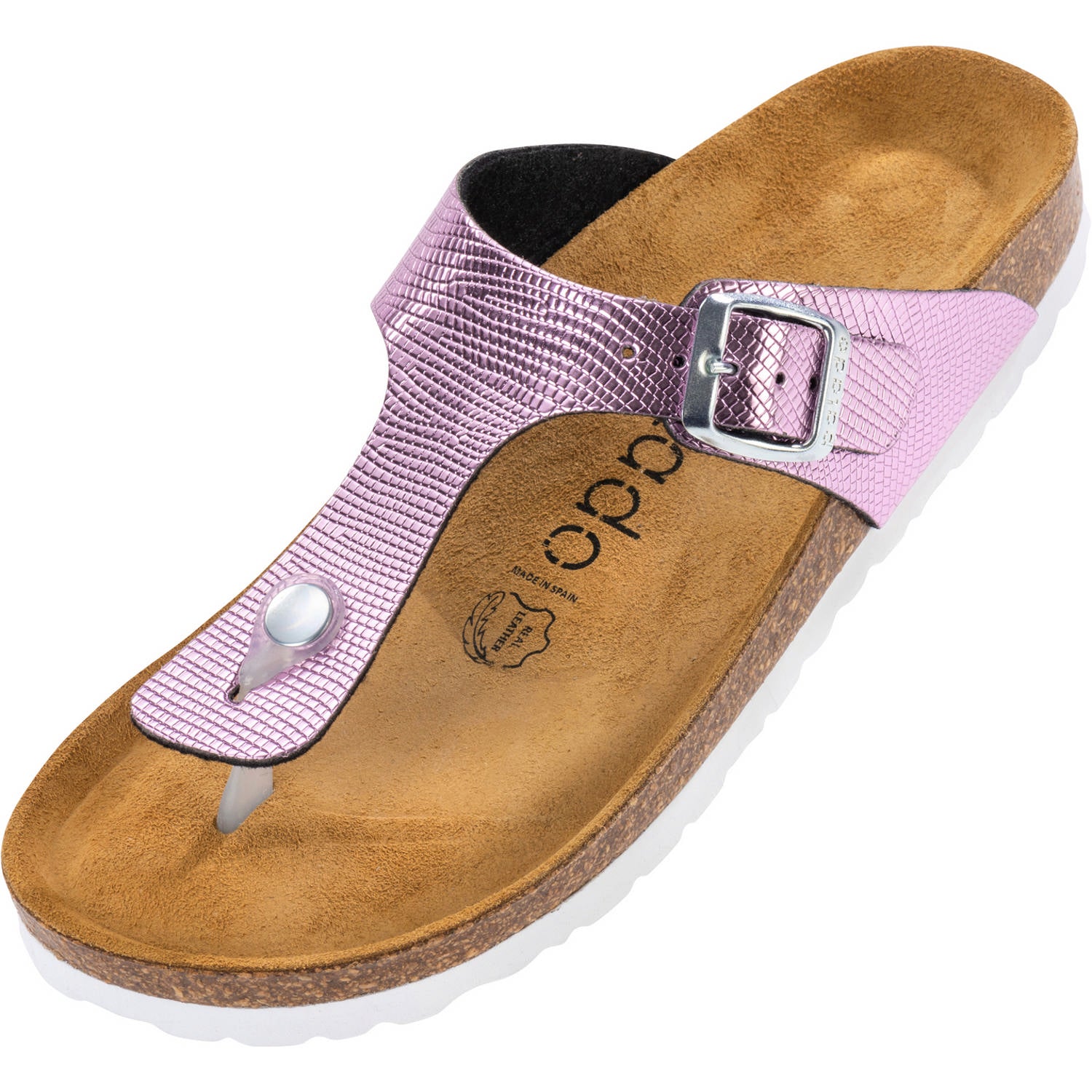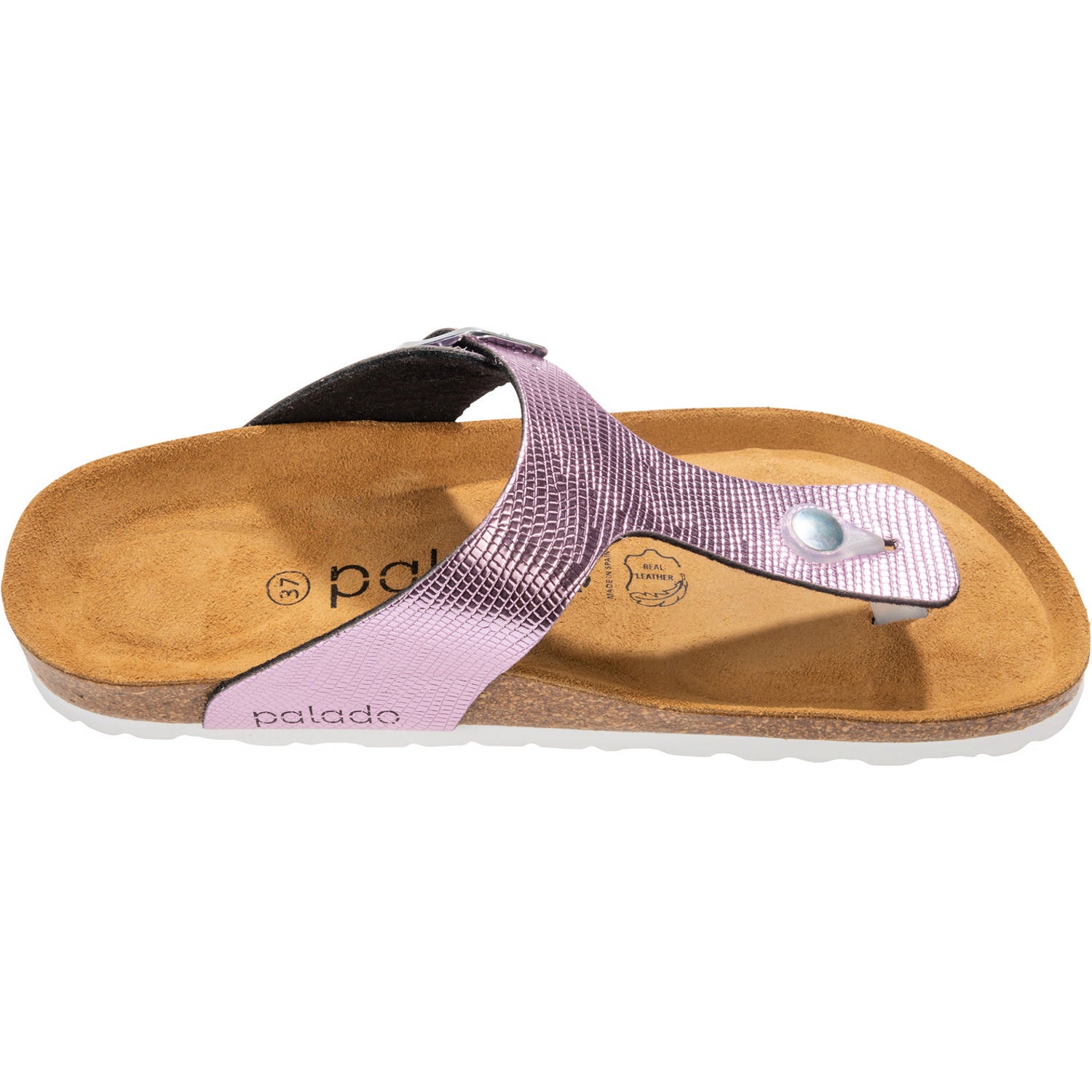 Der Palado „Kos Titano“ bringt eine wilde Eleganz in deine Garderobe. Das Obermaterial mit seiner auffallenden Prägung sorgt für einen exotischen Touch, während die weiche Veloursleder-Decksohle und die einstellbare Dornschließe Deinen Füßen Komfort bieten. Dieser in Spanien hergestellte Zehentrenner verbindet Qualität mit einem trendigen Design, und die robuste EVA-Sohle gewährleistet Langlebigkeit. Ob für das urbane Abenteuer oder den entspannten Alltag, mit dem „Kos Titano“ ziehst du garantiert Blicke auf dich.
