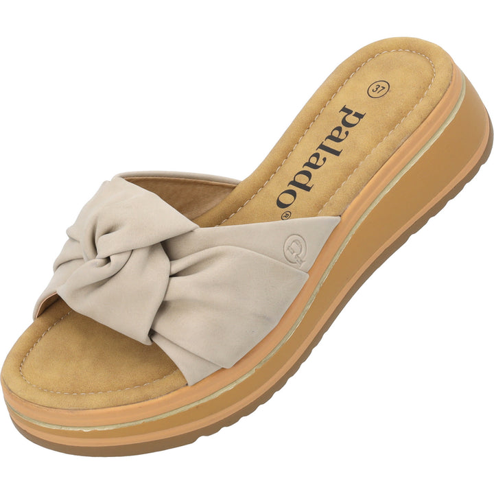 Ein feminines Schleifendetail macht den 'Palado Theryx' zu einem echten Hingucker. Gefertigt aus robustem und hochwertigem Material, punktet dieser Sommerschuh mit einer stilvollen Optik und hohem Komfort. Die weiche Decksohle sorgt für ein angenehmes Tragegefühl, während die leichte und flexible PU-Laufsohle sicheren Halt und Stabilität bietet. Durch das praktische Schlupfdesign lässt sich der Schuh mühelos an- und ausziehen. Ob für sommerliche Spaziergänge, entspannte Ausflüge oder einen gemütlichen Stadtbummel – der 'Theryx' ist die perfekte Wahl für Frauen, die Eleganz und Bequemlichkeit schätzen.